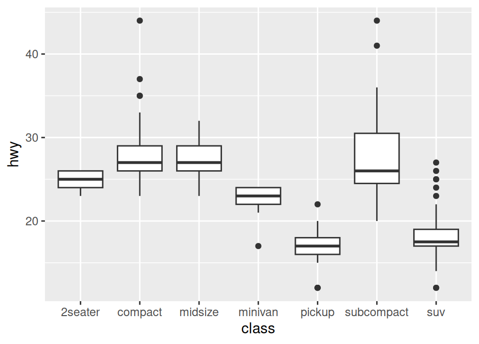 ggplot(mpg, aes(x = class, y = hwy)) +