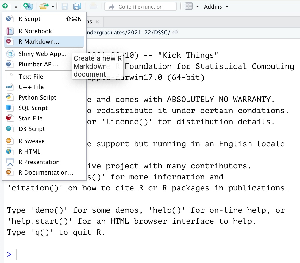 Dynamic Documents ] .author[ ### Prof. Louis Aslett ] .institute[ ### Durham University ] .date[ ### 3 February 2026 ] --- <style type="text/css"> .remark-slide-content { font-size: 125% !important; } .smaller .remark-code { /*Change made here*/ font-size: 80% !important; } </style> ## Dynamic documents? **What?** - Combines report writing/slides/etc *and* code *and* data source in one file. - Change input data and the document will dynamically update. - Single source for multiple output formats (HTML, PDF, Word) - Single language for multiple output types (presentations, reports, books, papers, ...) -- **Why?** A major challenge for using data in industry, commercial and research settings is that reporting can become separated from the data itself, leading to problems in tracing how a particular graphic, statistic, etc was produced. - Harms reproducibility - Slows down making changes to graphics/analysis - Updating with new data slow - Error prone if process by which document generated is obfuscated -- RMarkdown allows us to mix content and code in a *plain text* format (no WYSIWYG). --- background-image: url(i/word_meme.jpg) background-size: contain class: center, bottom, inverse --- class: inverse ## Getting the packages ``` r install.packages("rmarkdown") install.packages("tinytex") ``` `tinytex` includes a miniture LaTeX distribution so that you can compile to PDFs! RStudio already includes the packages needed for Quarto, so you won't need to separately install those if you're using Codespaces (but you still need `tinytex` for PDF). If you're not on Codespaces, you may need to ask for help in the practical help session if you want to test Quarto. --- ## RMarkdown - Simple plain text format - Separate presentational style from content - Simplified formatting commands - Embedded code - Include LaTeX for mathematical content  --- ## Document preamble Section enclosed between two lines of `---` at the top is the "document preamble". Specifies various options for the document, including: - `title:` the document title - `author:` (optional) author's name - `date:` (optional) date for the document - `output:` a tree like structure for setting options of different output formats (HTML/PDF/Word) <img src="i/rmarkdown_opts.png" alt="" width="60%" style="display: block; margin: auto;" /> --- ## Simple formatting Styles: - `*italic text*` - *italic text* - `**bold text**` - **bold text** - `~~strikeout text~~` - ~~strikeout text~~ Sections: - `# Section heading` - 1. Section heading - `## Sub-section heading` - 1.1 Sub-section heading - `### Sub-sub-section heading` - 1.1.1 Sub-sub-section heading Misc: - `[Prof. Aslett's homepage](https://www.louisaslett.com/)` - [Prof. Aslett's homepage](https://www.louisaslett.com/) --- ## Lists .pull-left[ - First item - Second item - First sub-item - Second sub-item - Third item ] .pull-right[ ``` r - First item - Second item - First sub-item - Second sub-item - Third item ``` ] .pull-left[ 1. First item 1. Second item i. First sub-item ii. Second sub-item 1. Third item ] .pull-right[ ``` r 1. First item 1. Second item i. First sub-item i. Second sub-item 1. Third item ``` ] **Note:** 4 spaces needed to create the indent **Note:** Don't need to increment the numbering manually --- ## Including R code and output (inline) R can be included inline in text very easily. eg: ``` r `r 1+1` ``` will substitute the value 2 in that place. To show the code in a code font, but not execute, don't include the "r". eg: ``` r `1+1` ``` will make the text look like this `1+1`. --- ## Including R code and output (chunks) I Use the triple-backtick fence, specifying the language to be R. <code> ```{r} <br> x <- rnorm(10, 3) <br> mean(x) <br> ``` </code> Prints both the code (nicely formatted) and the result of executing that code: ``` r x <- rnorm(10, 3) mean(x) ``` ``` [1] 2.837827 ``` --- ## Including R code and output (chunks) II Various options change the behaviour, including: - `echo=FALSE` to suppress printing the code (just show the output) - `eval=FALSE` to show the code, but not run it Obviously using both together is ... largely pointless! -- Plots can be included by simply calling the plotting command. - `fig.width` and `fig.height` take numeric options to specify size - `out.width` and `out.height` allow character options (eg "25%") to proportionately scale. --- <code> ```{r,echo=FALSE} <br> hist(x, main="Histogram of 100 Normal(mean=3, sd=1)") <br> ``` </code> <!-- --> --- ## Tables ``` html | Col1 | Col2 | Col3 | Col4 | Col5 | |------|------|-----:|------|:----:| | a | 1 | x | `a` | x | | b | 2 | y | `b` | y | ``` | Col1 | Col2 | Col3 | Col4 | Col5 | |------|------|-----:|------|:----:| | a | 1 | x | `a` | x | | b | 2 | y | `b` | y | -- See also the great package `gt` [https://gt.rstudio.com](https://gt.rstudio.com) --- ## Maths You can write LaTeX inside a pair of dollar symbols, eg: `$\alpha+\beta$` renders `\(\alpha+\beta\)` You can use the display style with double dollar signs: ``` $$\bar{X}=\frac{1}{n}\sum_{i=1}^nX_i$$ ``` `$$\bar{X}=\frac{1}{n}\sum_{i=1}^nX_i$$` -- ``` \begin{align*} asd &= asd \\ &= asd \end{align*} ``` `\begin{align*} e^{i \pi} &= \cos \pi + i \sin \pi \\ &= -1 \end{align*}` --- ## Presentations Exactly the same source can support generating presentations rather than documents! Main difference: `##` triggers a new slide. --- ## Resources See also: - R Markdown cheat sheet - [https://github.com/rstudio/cheatsheets/raw/main/rmarkdown.pdf](https://github.com/rstudio/cheatsheets/raw/main/rmarkdown.pdf) - R Markdown website has good gallery of examples: - [https://rmarkdown.rstudio.com](https://rmarkdown.rstudio.com) - R Markdown books: - The Definitive Guide [https://bookdown.org/yihui/rmarkdown/](https://bookdown.org/yihui/rmarkdown/) - Cookbook [https://bookdown.org/yihui/rmarkdown-cookbook/](https://bookdown.org/yihui/rmarkdown-cookbook/)